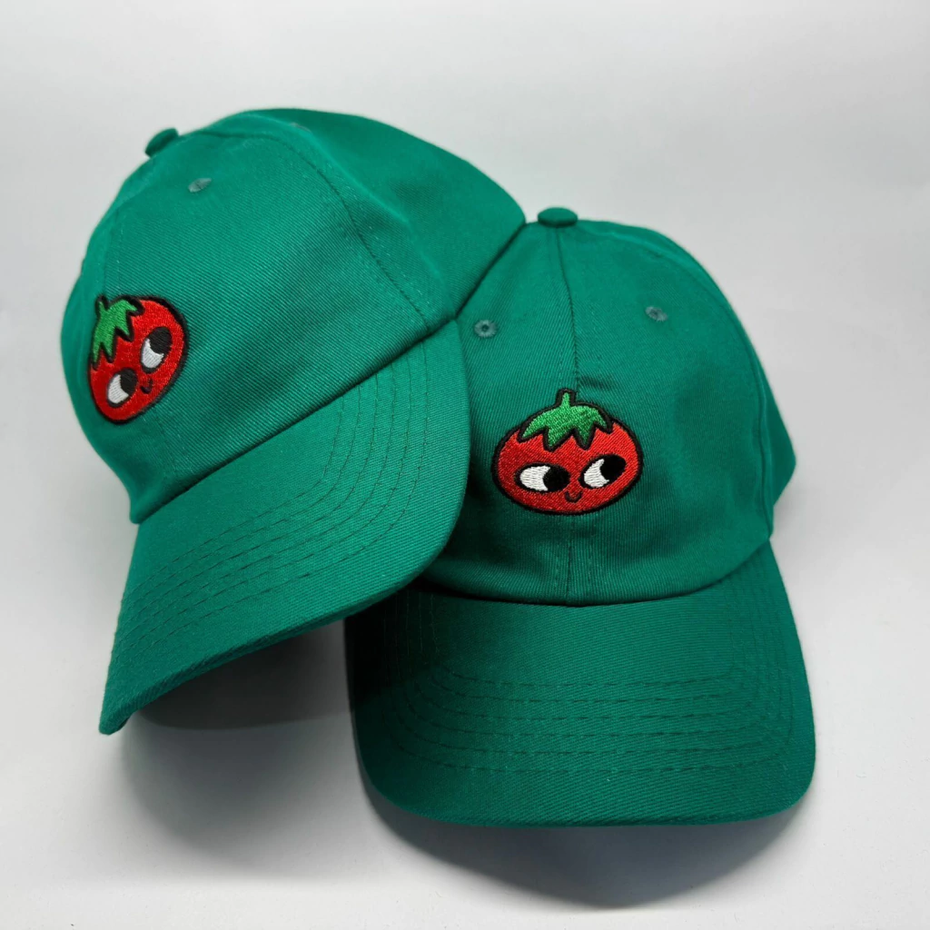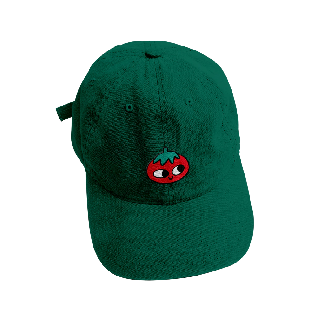 Boné para os amantes orgulhosos de tomates, da cor verde e de desenhos divertidos e cativantes